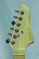 This version has the same large headstock and body shape as the Paduak. The headstock colour matches the body colour and the scratch plate follows the contours of the body. There are 12 screws on the scratch plate.